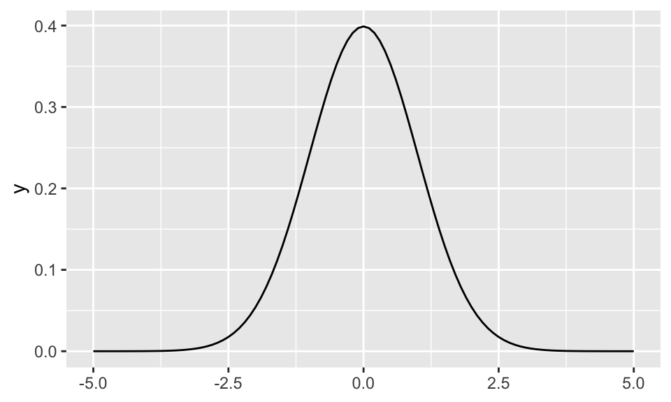 stat_function(fun = dnorm, xlim = c(-5, 5))# 곡선 아래 면적으로 채움
